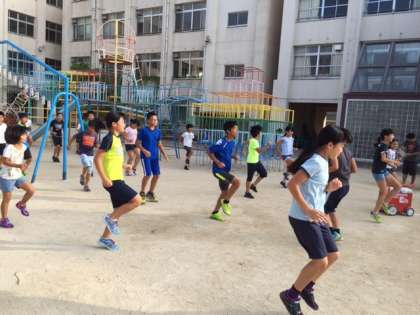 8月2日(水)7時から、明日の大阪市スポーツ交流会に向けて、最後の陸上早朝練習を行いました。