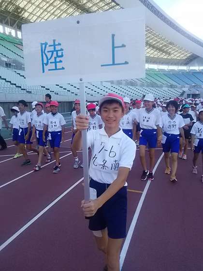 陸上の部のプラカードは、本校6年生が担当しています。