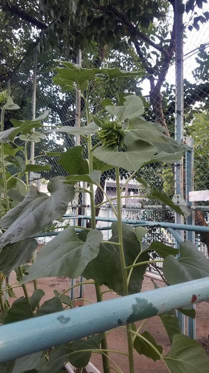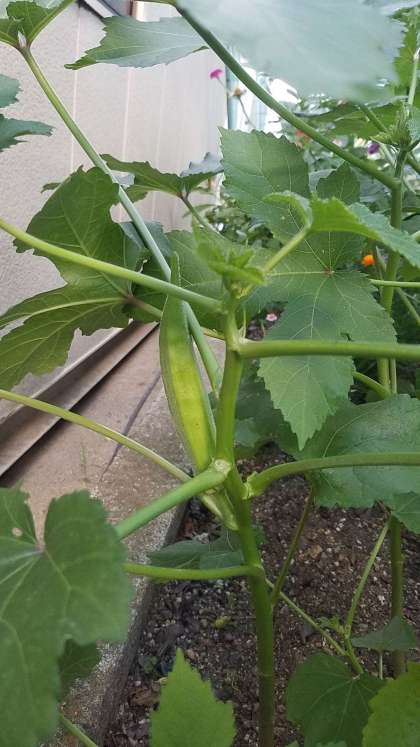オクラは、大きな実が一つできていました。他にも、もう少しで実がなりそうなものも見つけられます。また、ひまわりも背が高くなっており、お花のつぼみもできはじめました。大きな花が開くのが、今から楽しみです。