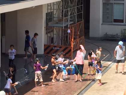 8月10日(木)の昼ごろ、職員室に子どもたちの楽しそうな歓声が聞こえてきました。