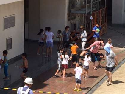 思わず外に出て行ってみると、いきいき活動に参加している子どもたちが元気に水遊びをしていました。