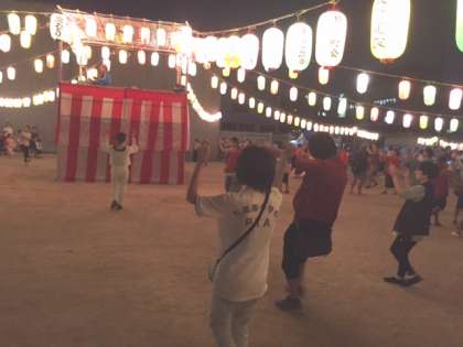 子ども会の模擬店や学校長の歌、「ダンシングヒーロー」「アラレちゃん音頭」「ドラえもん音頭」など盆踊りの新曲の数々も楽しいです。見どころ満載です。