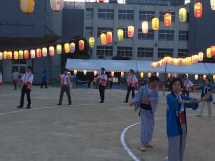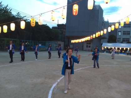 地域の皆様、保護者、子どもたちも踊りの輪に入り、3重、4重の円になり盆踊りを楽しみました。