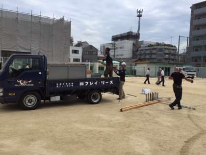 大盛況だった「九条南納涼盆踊り大会」から一夜明けた22日〈火〉午前、平日にも関わらず、大勢の九条南連合振興町会の役員の皆さんや女性部・女性会の皆さんが、校庭の片付けに駆けつけてくださいました。