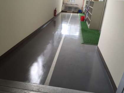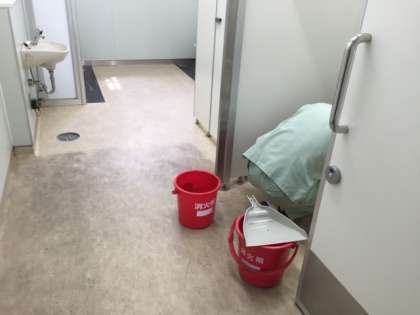 ドライトイレの床は、ポリッシャーという機械を使って洗浄していましたが、思ったように綺麗にならず、再度、手作業でていねいに磨きあげていました。写真を見ると違いは一目瞭然です。