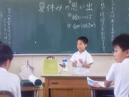 のメニューの中から、自分で選んで発表しました。発表後、質問をしたり、日記に発表でよかったところを書いていいところをお互いに伝え合ったりしました。