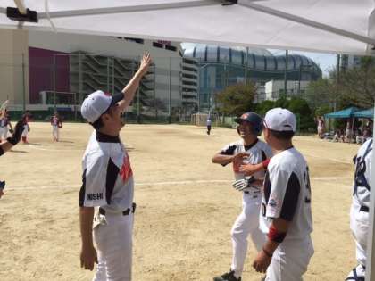 準決勝戦でも2人のピッチャーが頑張りました。ピッチャーに疲れが見えるとメンバーの元気な励ましの声がかけられます。チームワークはどこのチームにも負けてはいません。