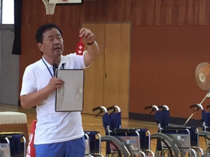 介助体験では声を利用者にかけながら介助することの大切さや、利用者の安全のために後ろ向きでスロープを下ること等を学習しました。