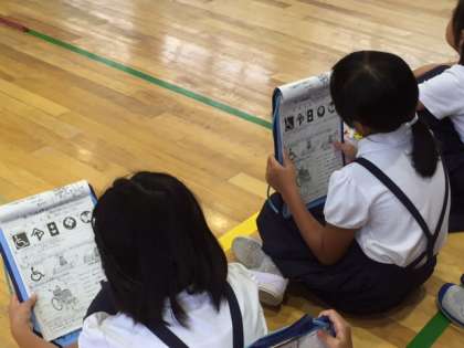 リハビリテーションセンターの方が最後に「バリアフリーな社会になるためには、障害のある方に対してだけではなく家族や友達など身の周りの人を思いやる気持ちが何よりも大切で、お互いに思い合うことができる社会になってほしいです。」とおっしゃっていました。今日の学習をこれからの生活に活かしていってほしいですね。