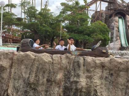 絶叫系のアトラクションが苦手な児童もスリルを楽しんでいました。