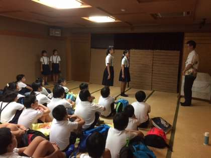 宿の方へのあいさつは、酒井さん、白川さんでした。4人とも堂々とした態度で役割を果たし、宿の方も感心されていました。