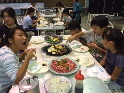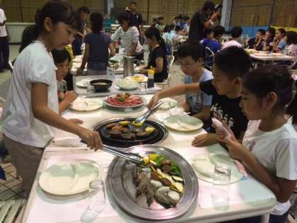 6年 修学旅行 「夕食 バーベキュー」を堪能しました。