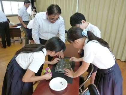 「ノギス」という、0.05mm単位まで測ることができる工具と初めて出会い、児童は興味津々に取り組んでいました。物の幅だけでなく、深さまで計測できることに驚いていました。