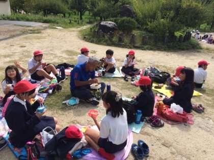 各班で「いただきます」を行い、たてわり班の友だちと和やかにお話をしながら、仲良くお弁当