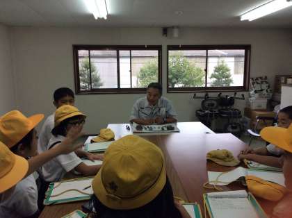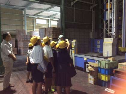村井製作所の村井社長に、ねじの歴史をはじめ、製造、流通の変化についてていねいに説明していただきました。約40年前にこの地に建設した「ネジセンター」で働いておられる方は、たった二人。ねじ製品の管理や出荷は、すべてコンピューターで制御されています。取材に行った子どもたちは、村井社長の説明に聞き入りながら、ねじに関わって疑問に思ったことを積極的に質問していました。