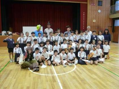 講堂中に、大きな声で英語を話す子どもたちの声と、笑い声が響いていました。