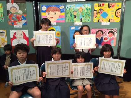 本校の表彰を受けた6名の作品も構図が工夫されているもの、しっかり塗り込まれているもの、祖父母との楽しかった思い出を表情豊かに描いているもの、ていねいにはり絵で表現しているものなど、全作品の中でしっかい輝きを放っていました。