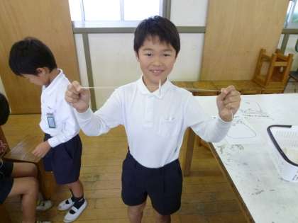 最後の感想でも、「こまを初めて作って楽しかった。」や「糸電話はおもしろかったので、家でも作りたい。」など、たくさんの2年生が感想を発表していました。おうちでも、ぜひお話を聞いてあげてください。