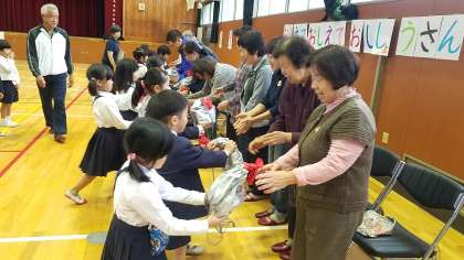 1年生の子どもたちは、おはじきやメンコを中心に、どうやって遊ぶのかと教えていただくのを楽しみにしていました。また、なかなかうまくできないコマやけん玉のコツも教えていただき、とても充実した時間となりました。昼休みに早速、教えていただきたことを練習している子も多かったです。