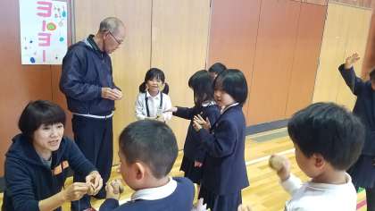 ヨーヨーコーナーでは、エレベーターのようにヨーヨーを上下させられるようになると、何回続けられるか友だちと数えながら楽しんでいました。お師匠さんは「手首を上手く使うと何回でもできるよ。」と、手本を見せながら教えてくださっていました。