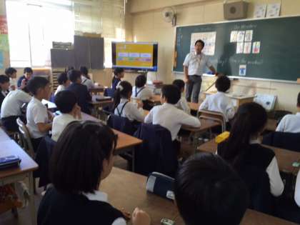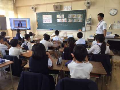 手拍子をしてみると日本語に比べて音のかたまりが少ないことが分かります。どこにアクセントがあるかも体感を生かしながらICTを活用し、楽しく学習を進めることができました。