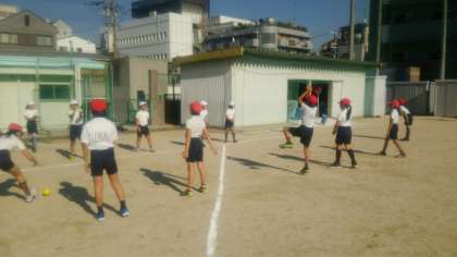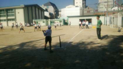 体育でティーボールに取り組みました。野球に詳しい青木先生が本日のゲストティーチャーです!キャッチボールでは相手の胸に向けて受け取りやすいボールを投げようと教えてもらい、皆めあてをもって投げていました。試合ではバットを振ったことのない児童もいることからボールに当たるまでチャレンジできるルールは子どもたちも喜び、真剣そのものでした。当たると「走れ走れ!」と応援の声が飛び交い、全員で楽しく参加することができました。