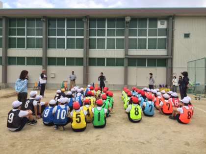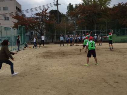 保護者の方や地域の方もたくさんお越しいただき、一緒に試合を楽しみながらも、的確なアドバイスをいただきました。これだけたくさんのおとなの人と一緒に遊ぶ経験はなかなかできないので、「負けてもハッピー」を合言葉に、勝ち負けにこだわらず、楽しむことを一番に「投げる・打つ」の技能を高めることができました。