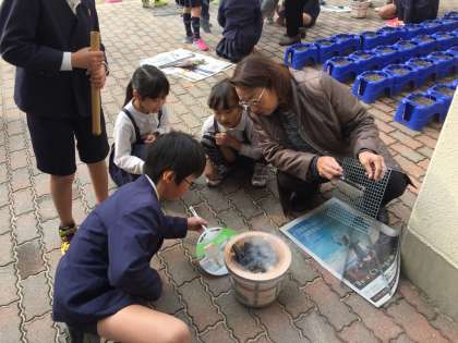 七輪で炭をおこし、お餅を焼いてみると、「とても時間はかかったけど、その分おいしく感じました。」といった感想が聞かれました。実際に経験してみると大変さや良さを感じることができ、とても貴重な学習になりました。