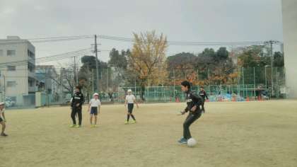 最後に、コーチ&先生VS子ども達で試合をしました。子どもたちは、コーチからボールを奪おう、ゴールを決めようと一所懸命汗を流していました。