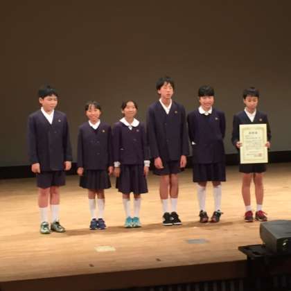 OSAKAスマホサミット2017「適切なネット利用対策実践事例コンクール」最優秀賞に輝いた6名を全校朝会で表彰しました。