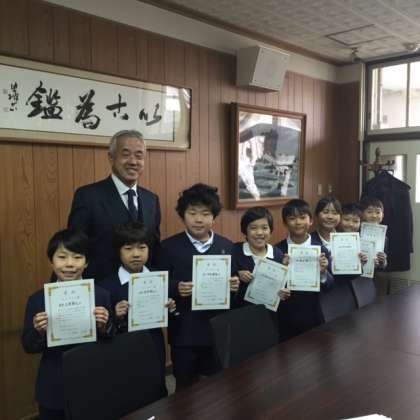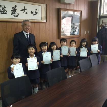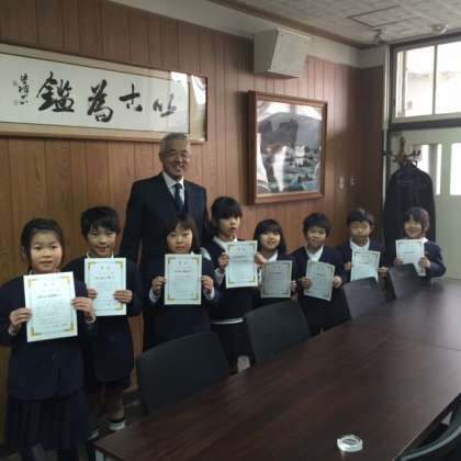 学校長から表彰状を受け取る子どもたちの表情はみんな笑顔でした。