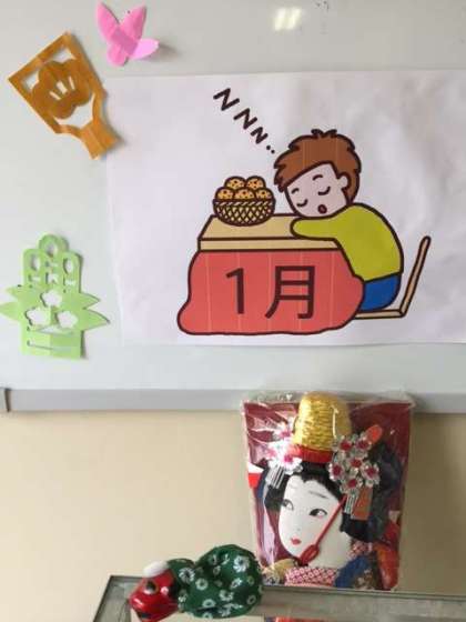 給食室には、本日の献立にピッタリな正月をイメージできる飾りがしてありました。