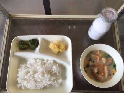 その後にのぞいた献立ケースを見て、「栗きんとんお正月に食べた。」「栗きんとんて・・・」会話がありました。時代の移り変わりとともに「おせち料理」を食べない家庭も増えています。給食での食育の重要性を感じる一コマでした。