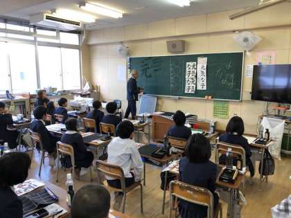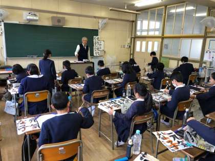 4年生は、校長先生に書き初めの指導をしていただきました。