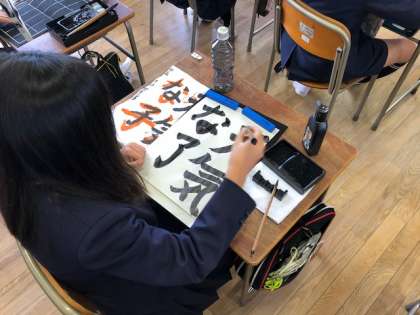 子ども達は、「校長先生に教えてもらったことに注意して書くと上手に書けるようになった」「気という字のはねるところで、筆の動かし方に気をつけると、上手く書けた」といった感想を言っていました。