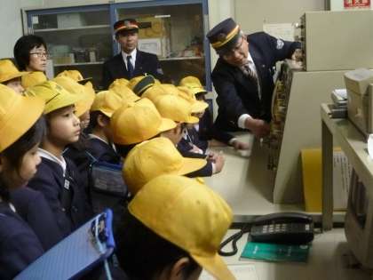 生活科の学習として、1月29日(月)に森ノ宮駅を見学しました。利用者が安全に、また快適に利用できる工夫や、駅員さんたちがどのような仕事をしているのかしっかり見てきました。ホーム、駅長室の中、切符販売機の裏側、中央指令室など普段は入ることができないところまで案内してもらい、子どもたちは大興奮でした。自分たちで切符を買って改札機を通す学習もしました。詳しい内容は、2月の参観でお伝えします。楽しみにしていてください。