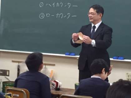 銀行時代に商品の開発をされた時のお話や銀行の様々なお仕事の内容についてプリントを活用し、分かりやすくご指導いただきました。