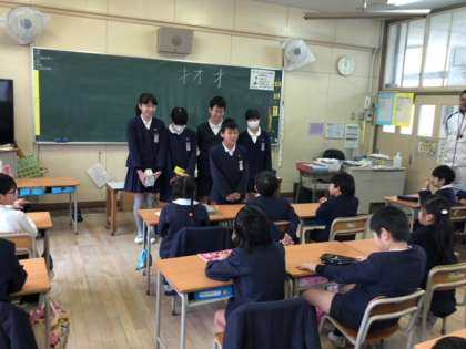 まず、これまでお世話になった6年生に感謝の気持ちを伝えました。5年生が代表して「ぼくたちが安全に登校できたのは、班長さんや後ろから声をかけてくれた6年生のおかげです。ありがとうございました。」とお礼を伝えました。