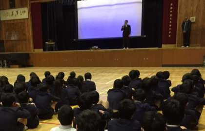 昨日の児童集会で児童向けに、挨拶をしていただきました。