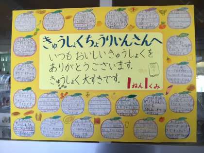 1月の「給食週間」に、大好きな給食についてや給食調理員への感謝の言葉が綴られた児童からのメッセージが届きました。