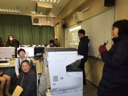 保護者の皆様には、子どもたちが、先生となり、プログラミングの方法をていねいに伝授していました。授業の最後には、作成した物語の発表会も行い、友だちの工夫を共有しました。