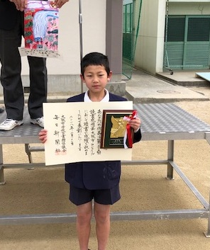 本校の4年生が「優秀賞」を授与されました。全校朝会で学校長からも表彰状を授与し、力強さを感じる彩色や構図について紹介していただきました。自分の思いや感想を絵でしっかり表現した素晴らしい作品に仕上がっています。