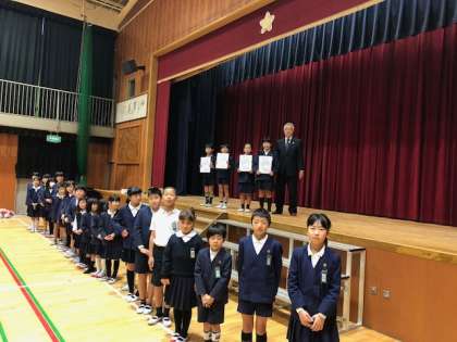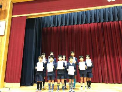 二つ目と三つ目は、図工関係のもので、「全大阪幼少年美術展」と「読書感想画」の表彰です。どちらの賞も、本校から多くの児童が表彰されました。