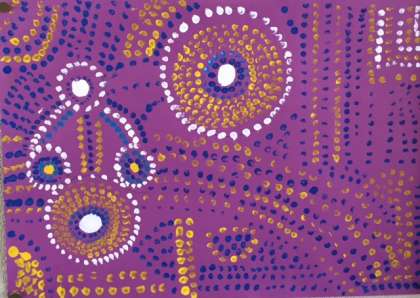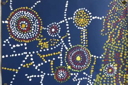 「アボリジニ アート」の様々な紋様や形には、色々な意味があります。外国の色々なアートや文化を図書室の書物やインターネットで調べてみると色々な発見がありますよ。