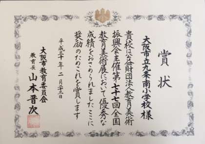第77回 全国教育美術展において「教育委員会賞(地区学校賞)」を授与されました。