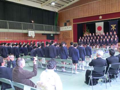 歌詞に思いをのせて歌い上げる、卒業生の「旅立ちの歌」、在校生の「はばたこう明日へ」には会場中が感動に包まれました。