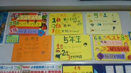図書委員会のメンバーがアンケート調査し各学年の人気の本を集計したポスターが図書室に掲示されています。