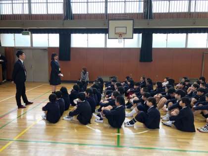 始業式の後に、5・6年生は講堂にて、高学年部の先生たちと「高学年開き」を行いました。