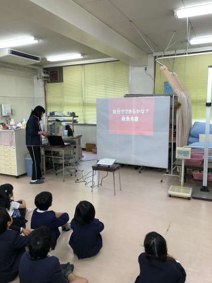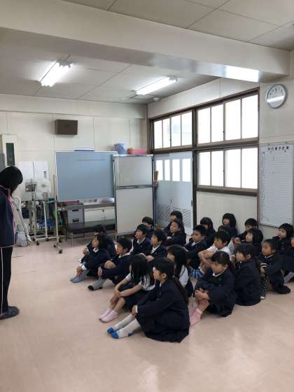 今日は2年生の発育測定。保健室で養護教諭の筏先生から自分でできる応急処置のお話がありました。「こけてすりむいた時はどうしますか。」「水で洗います。」1年生の時に教えてもらったことをちゃんと覚えておいて、日ごろから実行している頼もしい2年生でした。身長と体重の測定もスムーズにでき、心も体も成長していました。