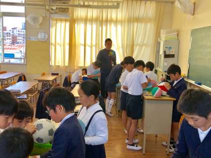 スポーツ委員会は、「ボール蹴ってもいいDAY」や「パワーアップDAY」の内容の充実や地域の教育活動ボランティアの皆さんのお力をお借りして今年度も実施する「遊びに行くDAY」の内容、運動用具の整備、運動会の準備など、たくさんの内容を話し合いました。スムーズな話し合いの後には、早速、運動用具を点検・整備していました。